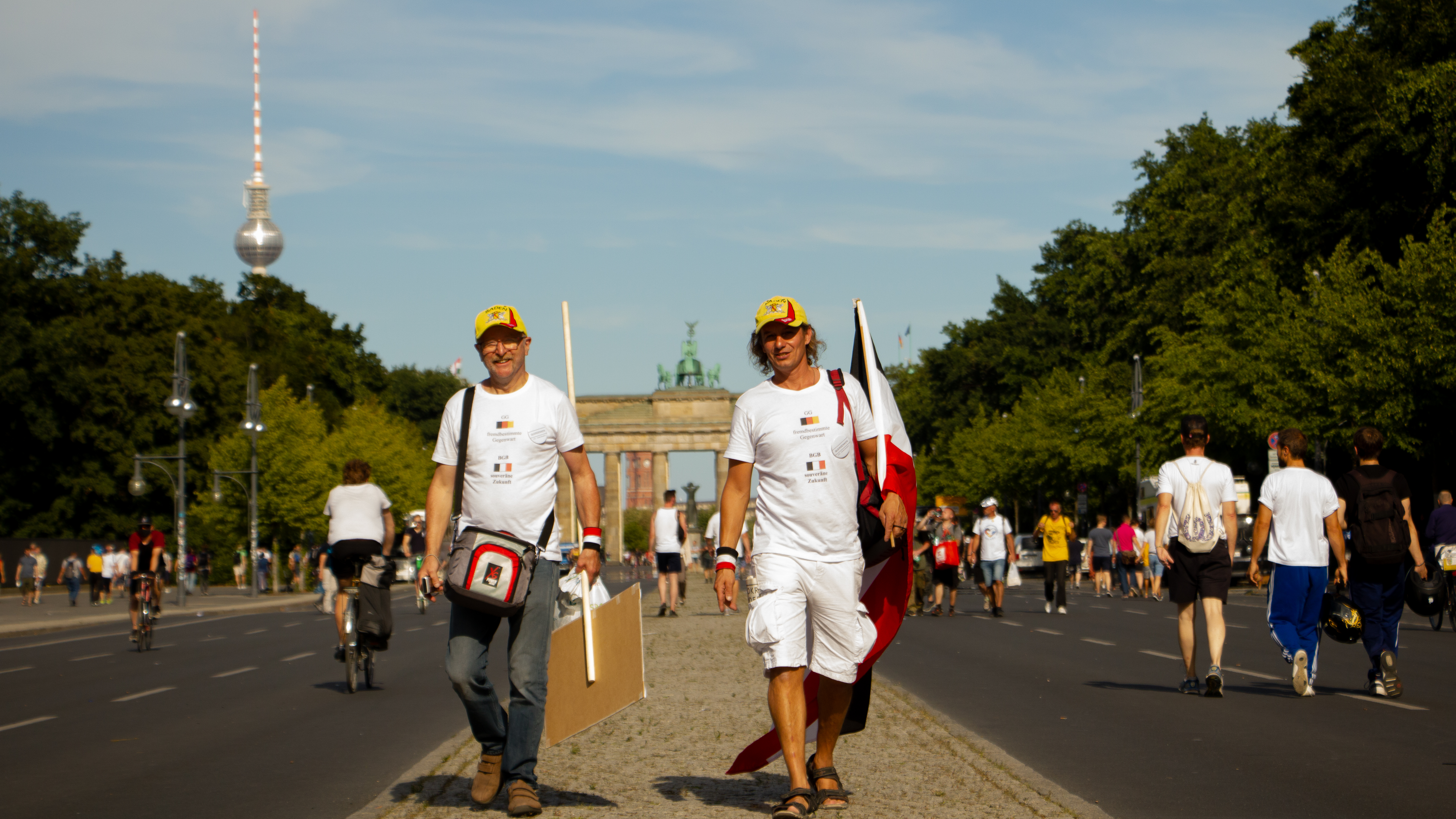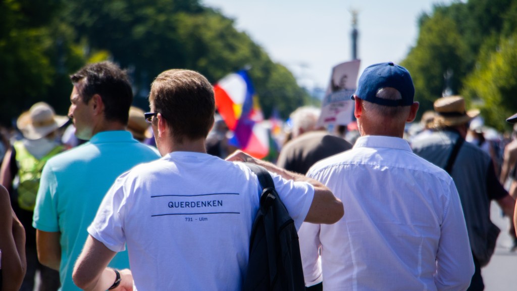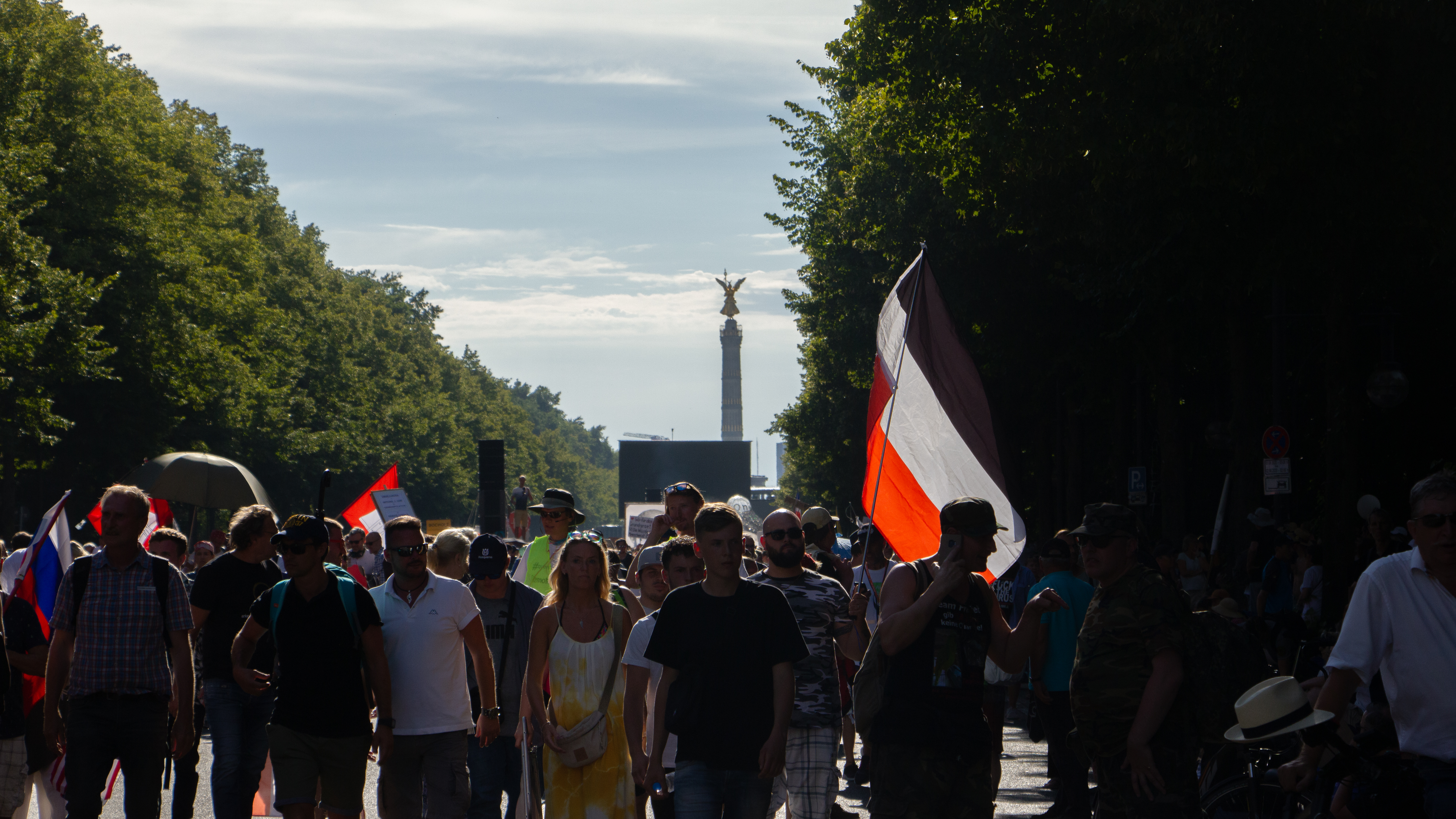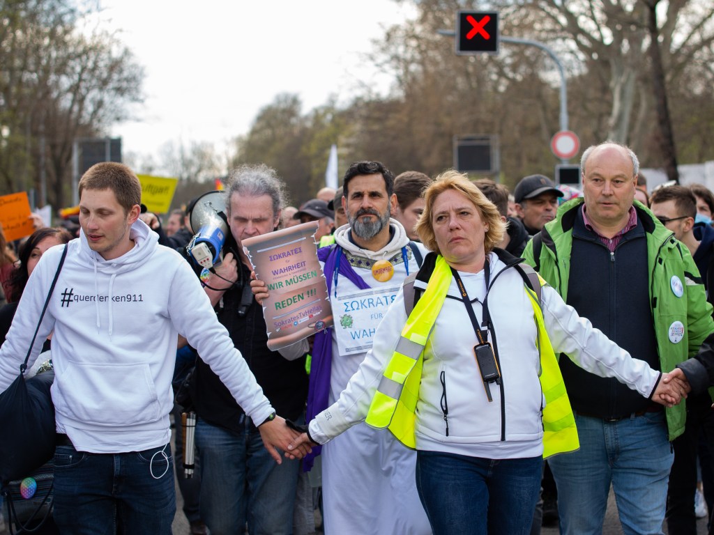 Was auf diesen Demos passiert ist sehr gefährlich. Bevölkerungsgruppen finden zusammen, die unter normalen Bedingungen nicht zueinander gefunden hätten. Auch wenn die Bewegung weiterhin eher eine kleine, laute Minderheit ist: hier entstehen aktuell Verbindungen, die in den kommenden Jahren eine Bedrohung für unsere Demokratie darstellen können.
