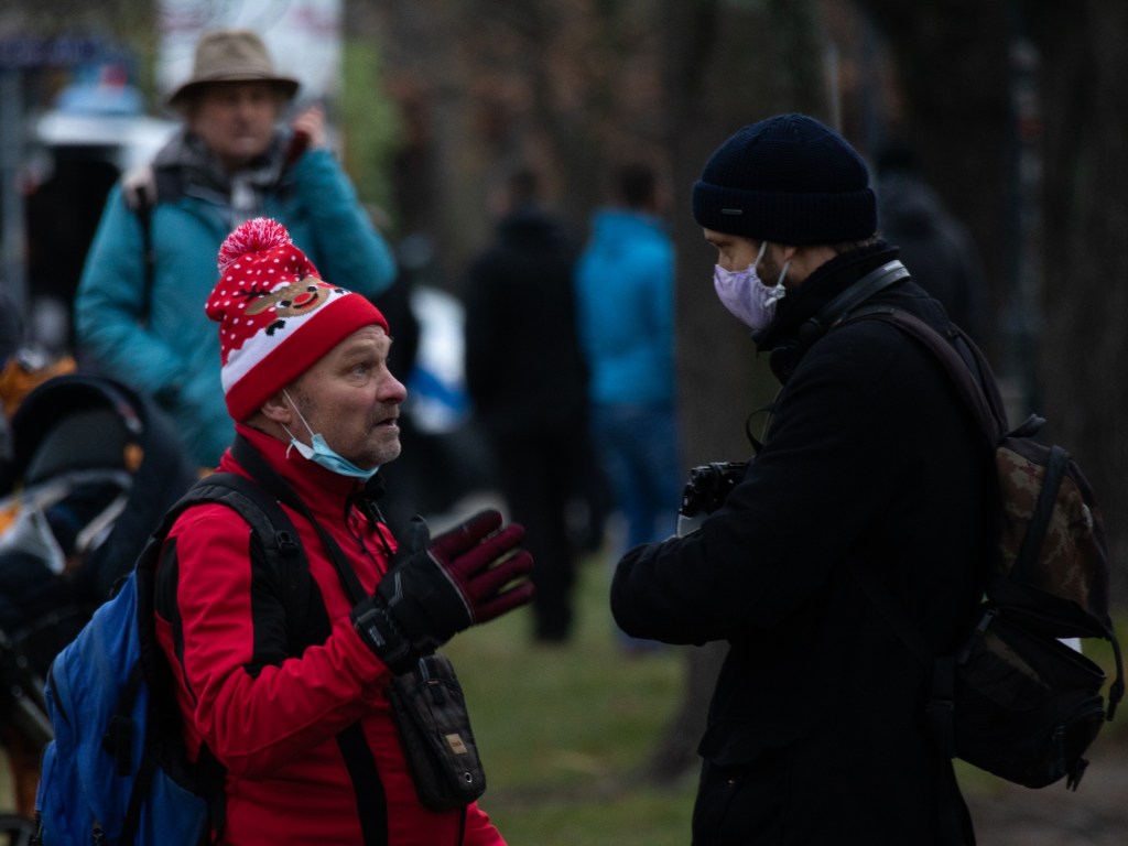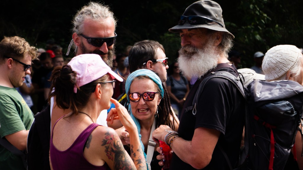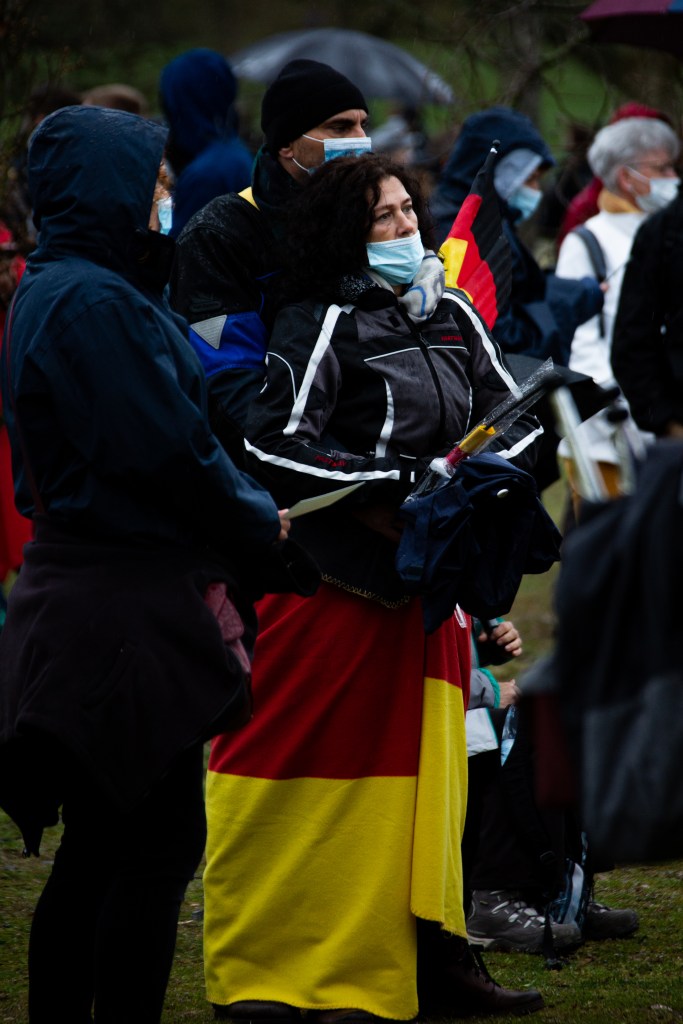 Man spricht von einer „Plandemie“, die Maßnahmen seien überzogen und richten, so eine Teilnehmerin, mehr Schaden als Nutzen an. Die Stimmung ist friedlich, ich werde als einziger Pressevertreter zunächst kritisch beäugt, erlebe die Versammelten aber als friedlich und gesprächsbereit.
