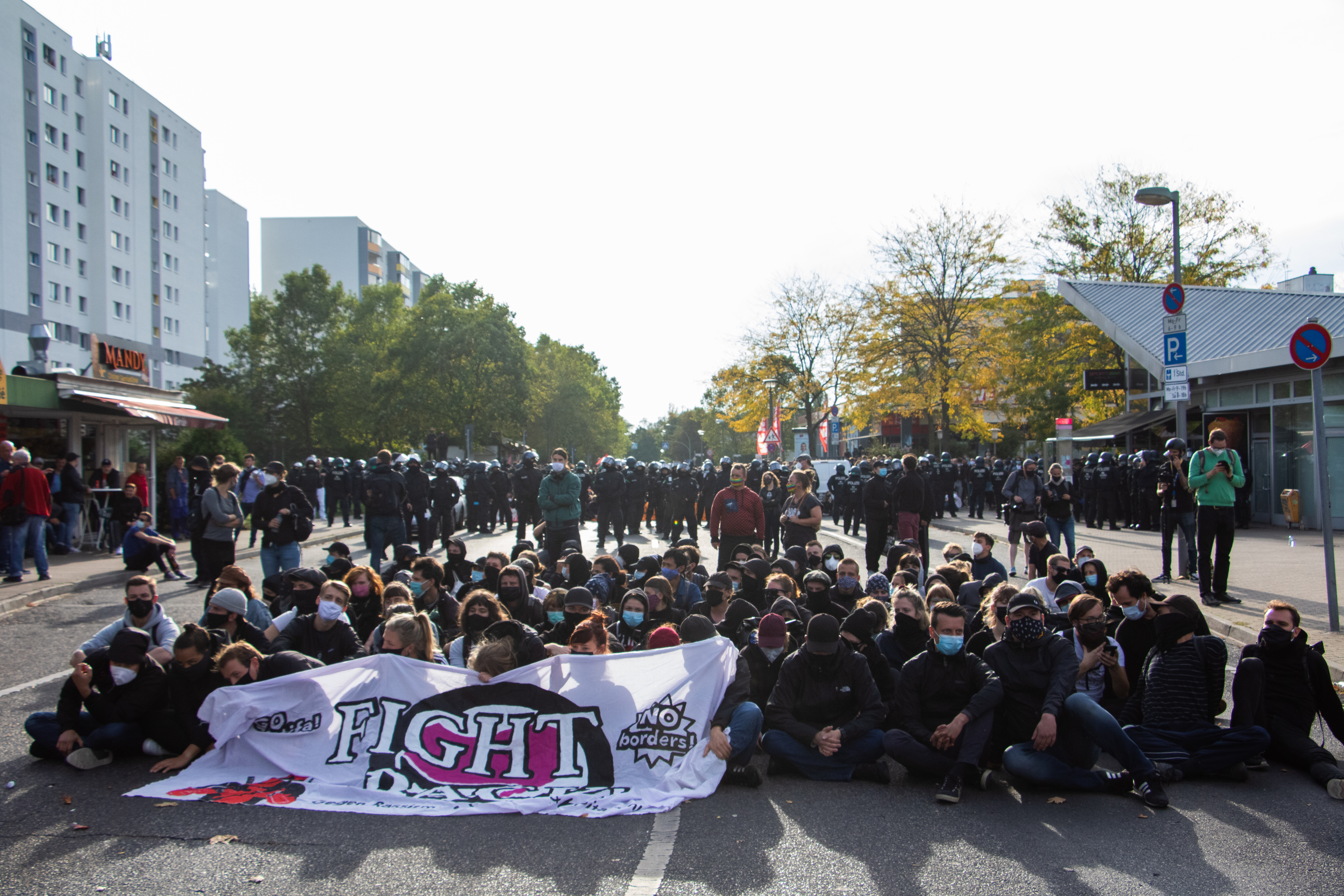 Für einige Zeit hat die Polizei die Lage nicht unter Kontrolle. Einige Neonazis wollen ihren angestauten Frust an den Linksradikalen rauslassen und prügeln sich stattdessen mit der Polizei. Nach einer halben Stunde ist alles wieder vorbei – ganze 150m hatte man zurückgelegt.