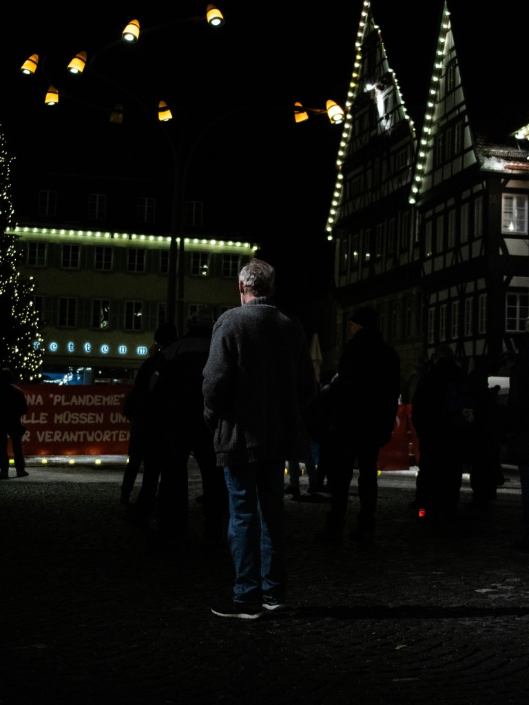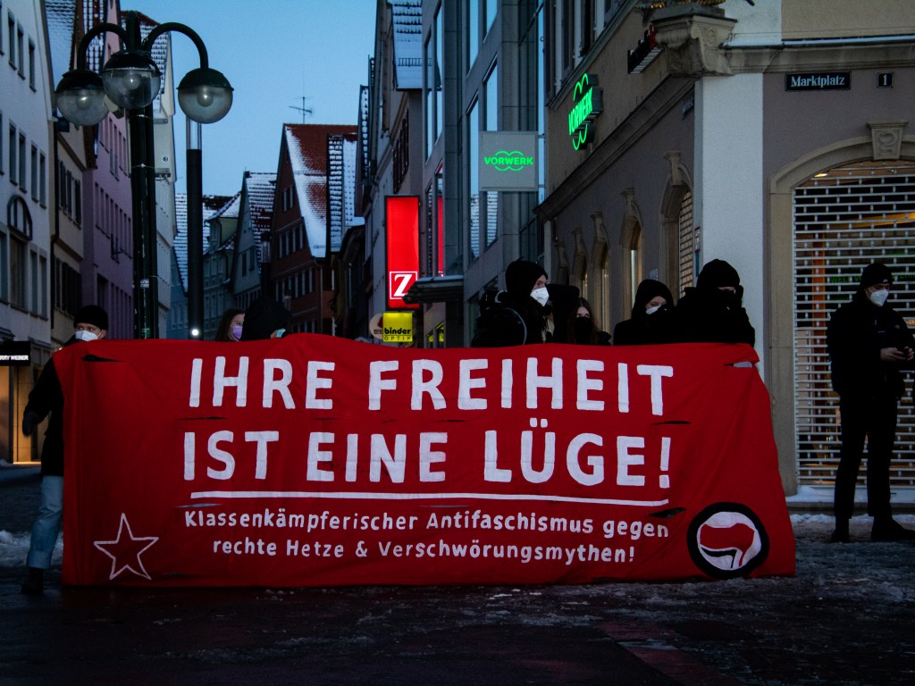 Bereits seit Wochen treffen sich teilweise bis zu mehrere hundert Personen auf dem Reutlinger Marktplatz, um gegen die Einschränkungen durch das Corona-Virus zu demonstrieren.