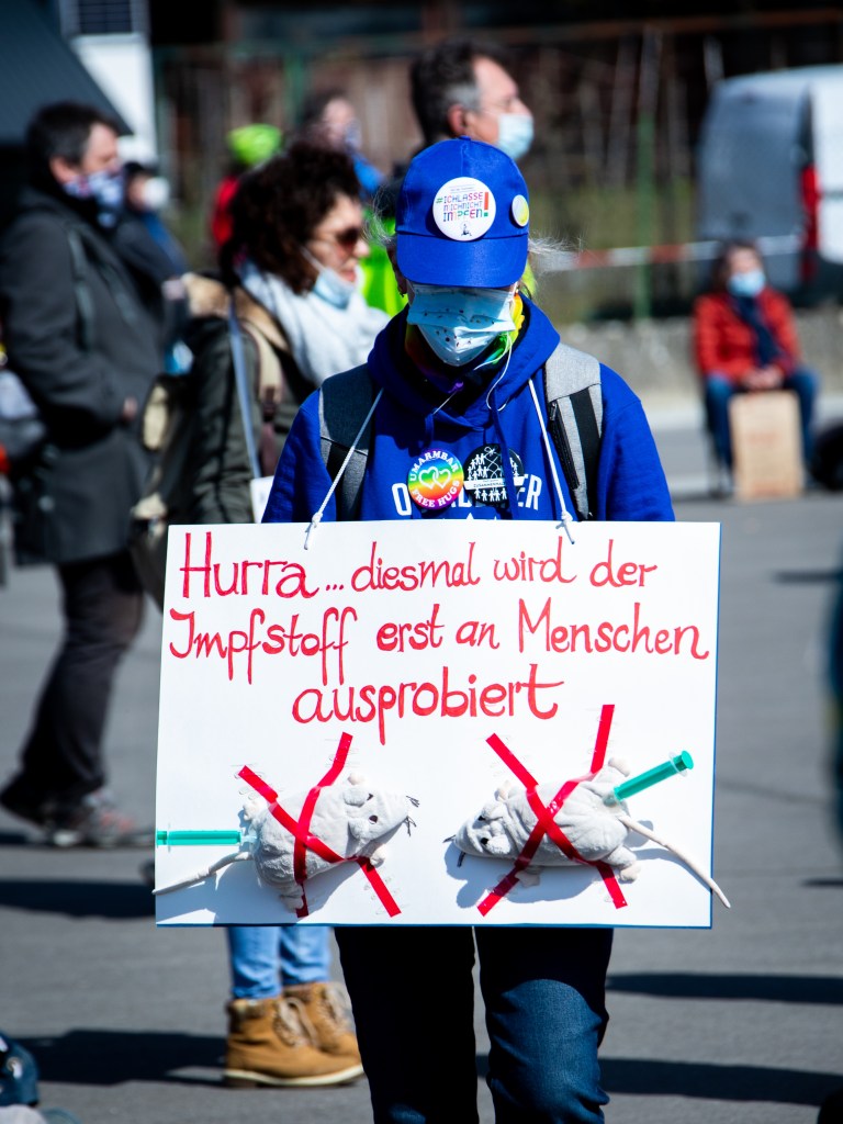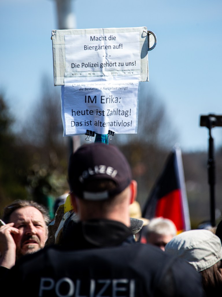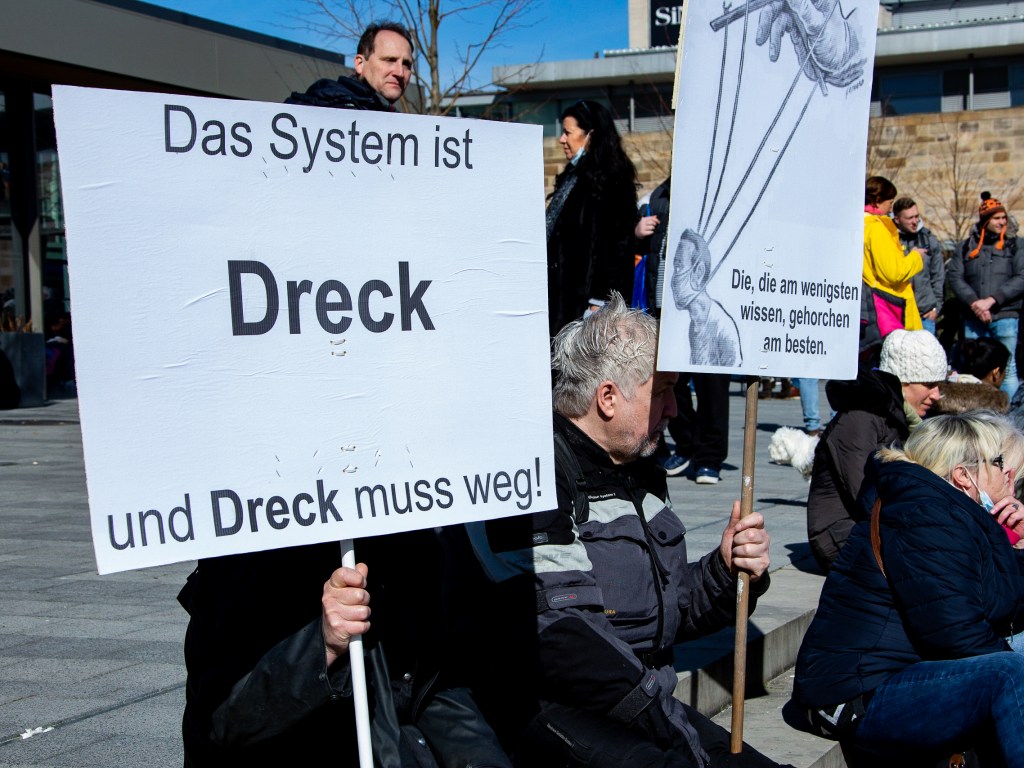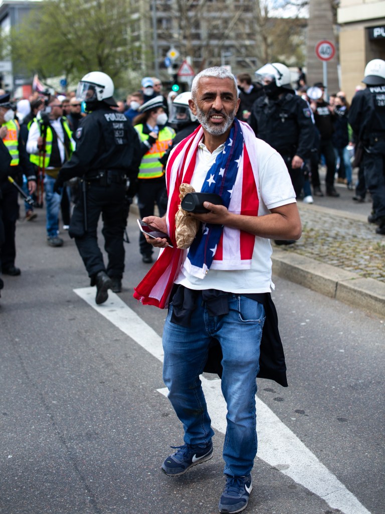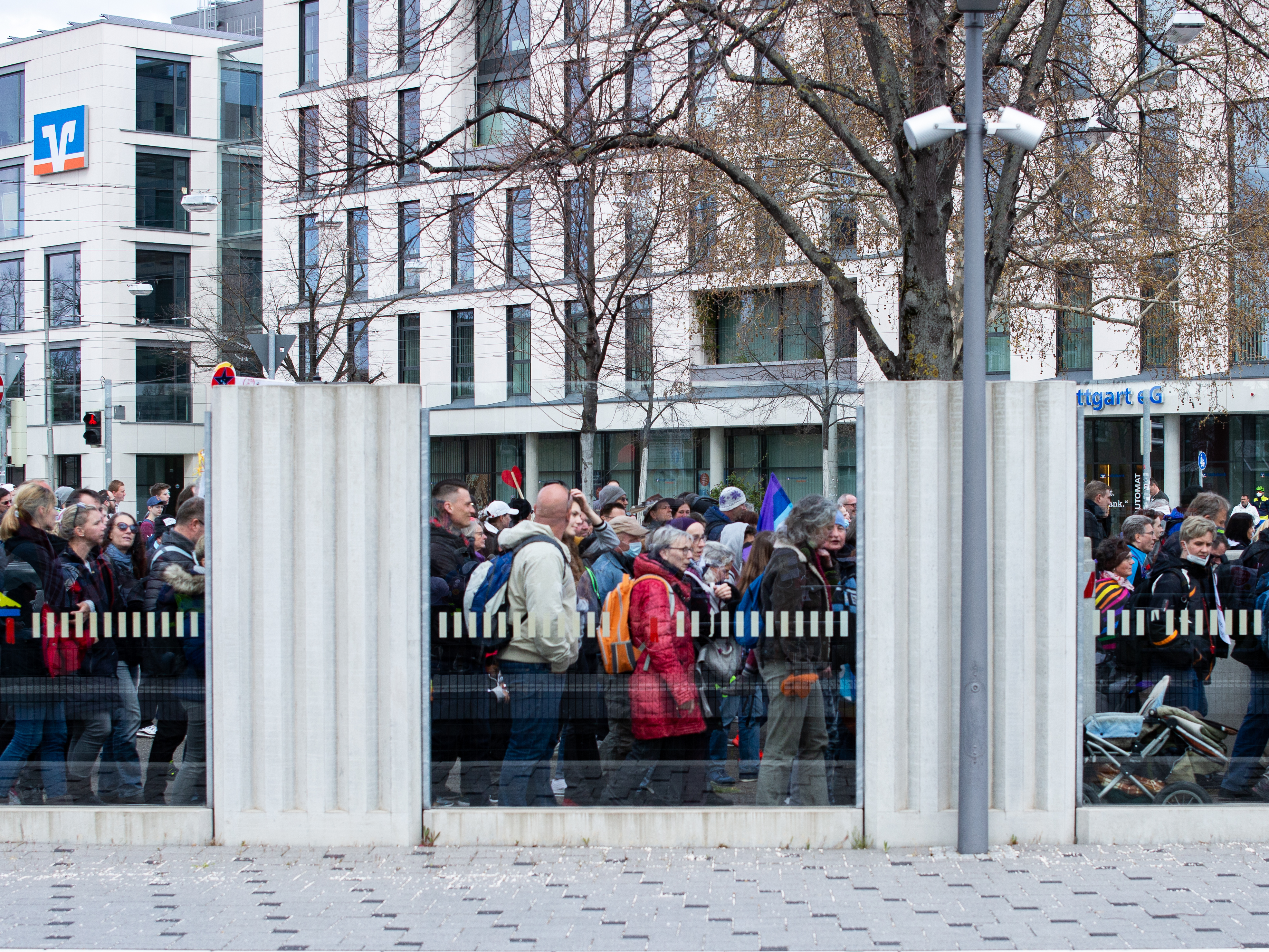 Die Stuttgarter Innenstadt ist an diesem Karsamstag nicht wiederzuerkennen. Von etwa 2.500 Teilnehmenden waren die Sicherheitsbehörden ausgegangen. Gekommen sind laut Agenturangaben mehr als 10.000 Menschen. Schon am Vormittag ist der Marienplatz brechend voll. Maskenpflicht? Mindestabstand? Fehlanzeige.