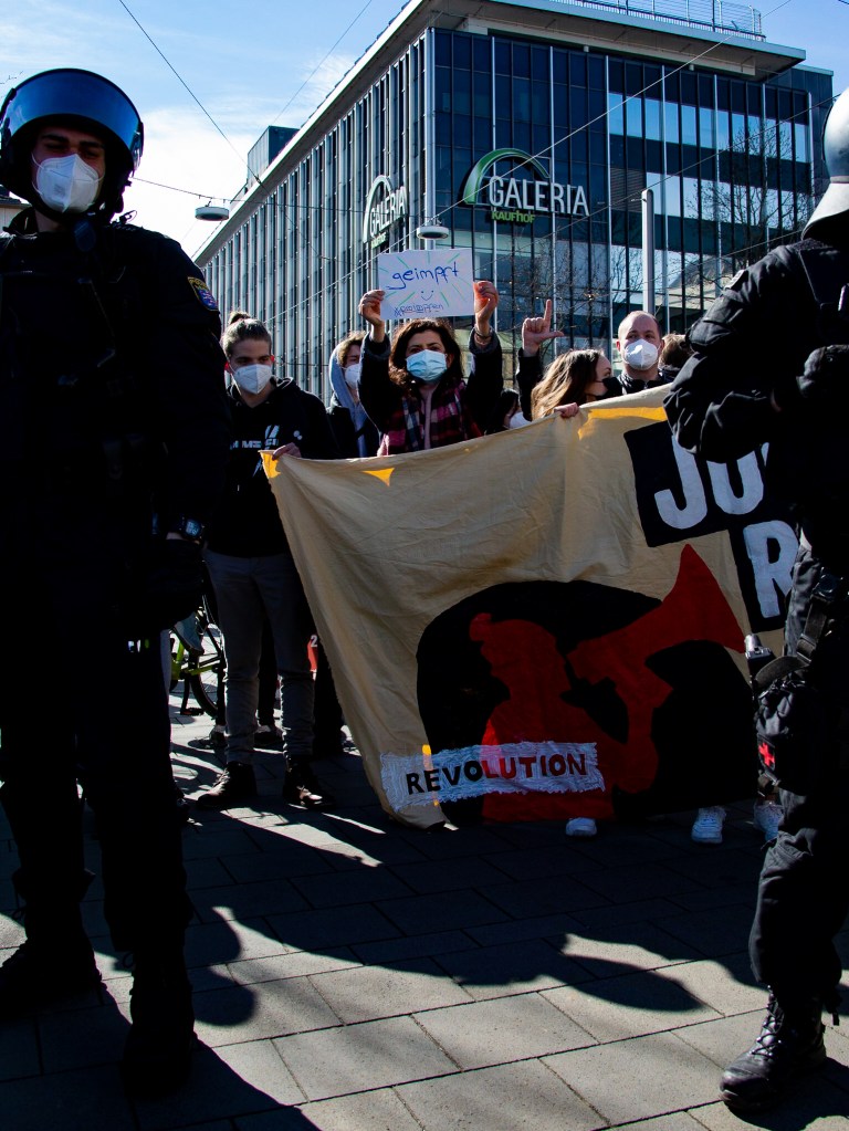 Die Verantwortlichen muss man an dieser Stelle klar benennen: die hessischen Justiz- und Polizeibehörden haben auf ganzer Stelle versagt. Die Einsatzleitung schien bereits im Vorfeld kein Interesse daran zu haben, die massenhafte Ansammlung in der Innenstadt zu verhindern. Als sich die Menge vom Friedrichsplatz zum Innenstadtring aufmacht, wird sie lediglich von wenigen motorisierten Polizisten begleitet.