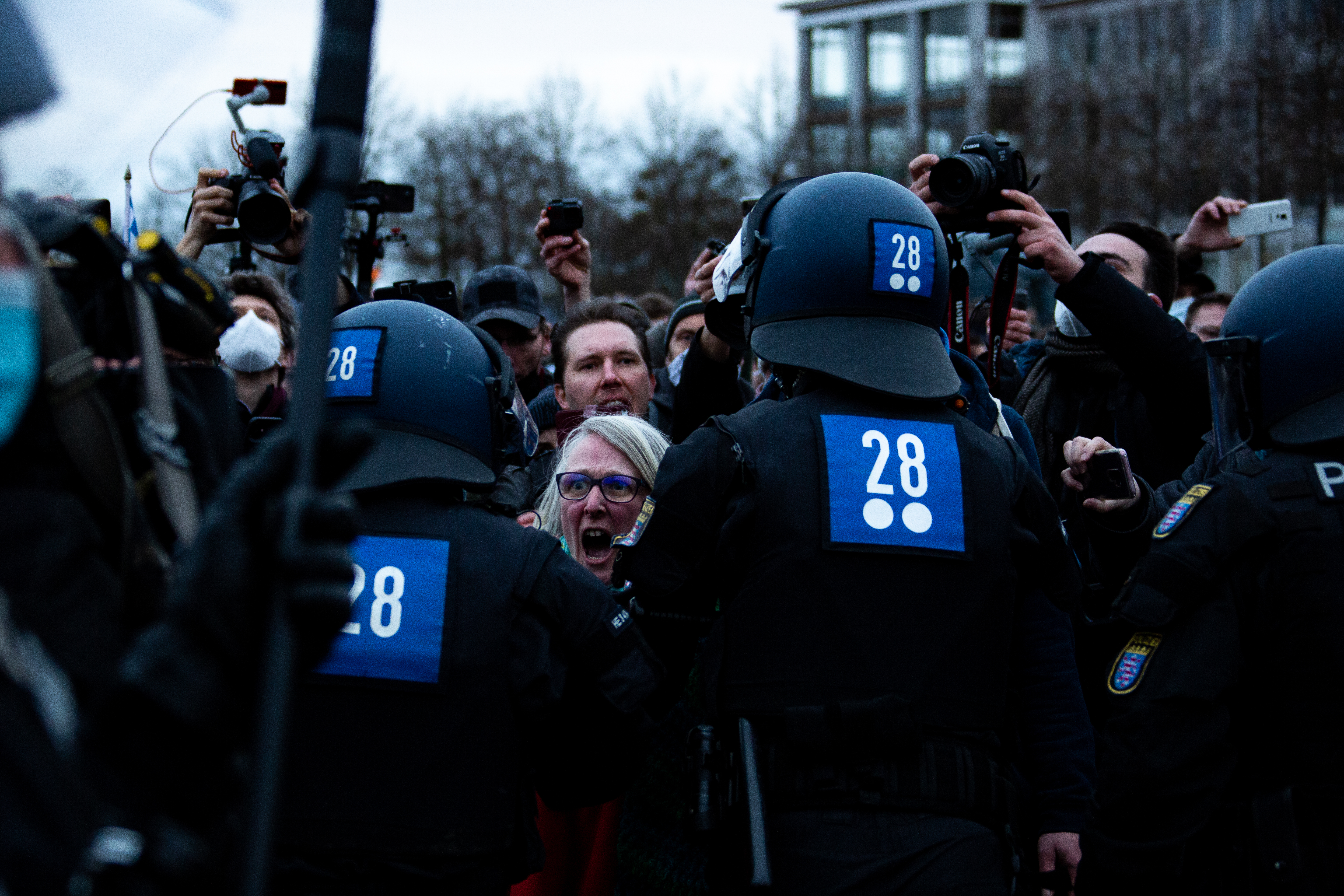 Über 20.000 Personen kommen in Kassel zusammen, um gegen die Corona-Maßnahmen der Bundesregierung zu demonstrieren. Die Veranstaltung läuft vollkommen aus dem Ruder. Trotz gerichtlichen Verbots laufen die Demonstrierenden über den Innenstadtring.